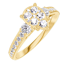 Bague Or jaune 18 carats - Cluster de diamants naturels Poire équivalent 1 - Pierres de côté Diamant - Sertissage Diamant