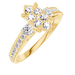 Bague Or jaune 18 carats - Cluster de diamants naturels Marquise équivalent 1 - Pierres de côté Diamant - Sertissage Diamant