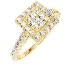 Bague Or jaune 18 carats - Cluster de diamants naturels Princesse équivalent 0.5 - Halo Diamant - Sertissage Diamant