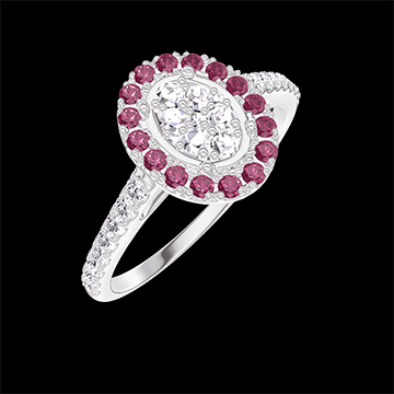 « L'ATELIER » Nº211568Bague Or blanc 9 carats - Cluster de diamants naturels Ovale équivalent 0.5 - Halo Rubis - Sertissage Diamant 4.8 (12)