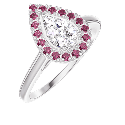 « L'ATELIER » Nº 211611Bague Or blanc 18 carats - Cluster de diamants naturels Poire équivalent 0.5 - Halo Rubis 5 (13)