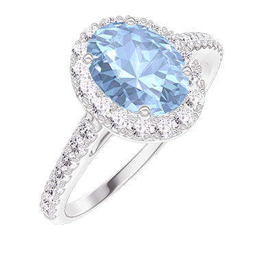 « L'ATELIER » Nº 211966Bague Or blanc 18 carats - Topaze bleue Ovale 0.5 carat - Halo Diamant - Sertissage Diamant 4.8 (12)
