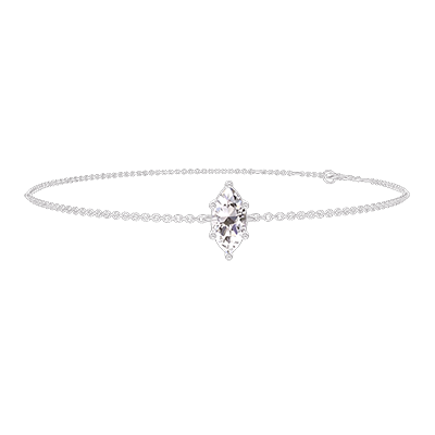 « L'ATELIER » Nº 402107Bracelet Or blanc 9 carats - Diamant synthétique Marquise 0.3 carat - Chaîne Forçat