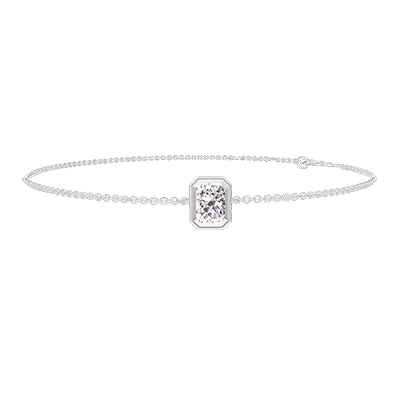 « L'ATELIER » Nº 402803Bracelet Or blanc 9 carats - Diamant synthétique Rectangle 0.3 carat - Chaîne Forçat