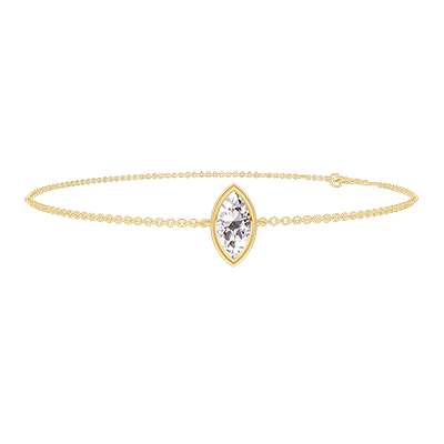 « L'ATELIER » Nº 402824Bracelet Or jaune 9 carats - Diamant synthétique Marquise 0.3 carat - Chaîne Forçat