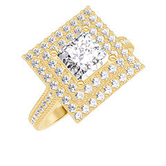 Bague Or jaune 18 carats - Diamant synthétique Princesse 0.5 carat - Halo Diamant synthétique - Sertissage Diamant synthétique