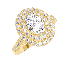 Bague Or jaune 9 carats - Diamant synthétique Ovale 0.5 carat - Halo Diamant synthétique - Sertissage Diamant synthétique