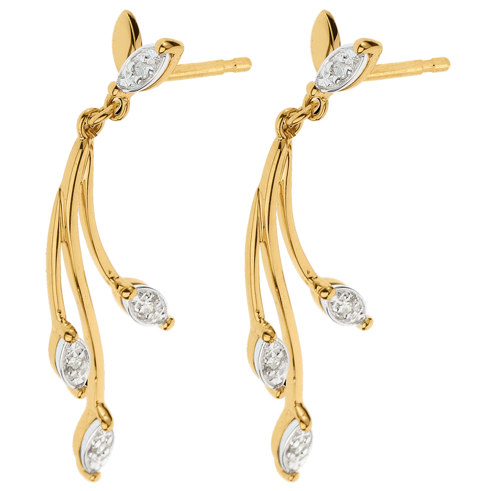 Boucles d'oreilles Luxuriance Végétale - or blanc et or jaune 18 carats et diamants