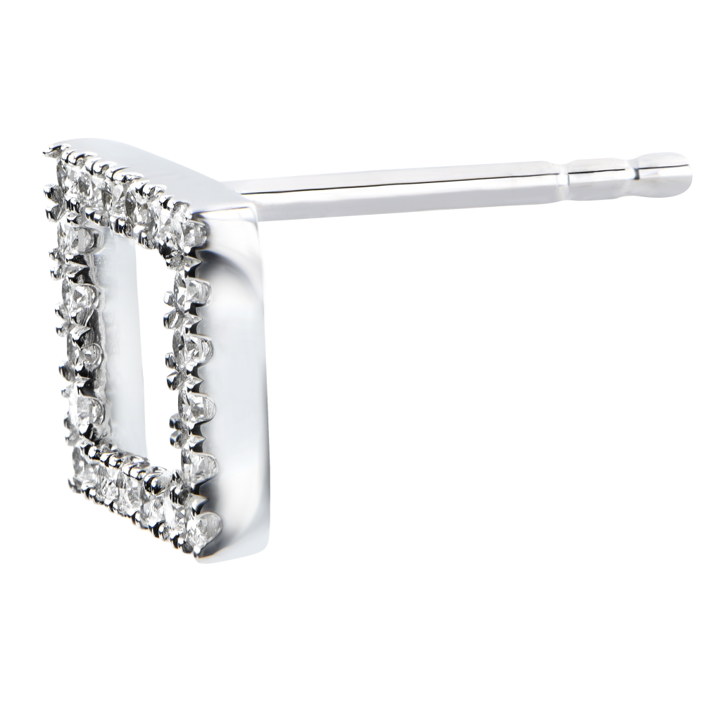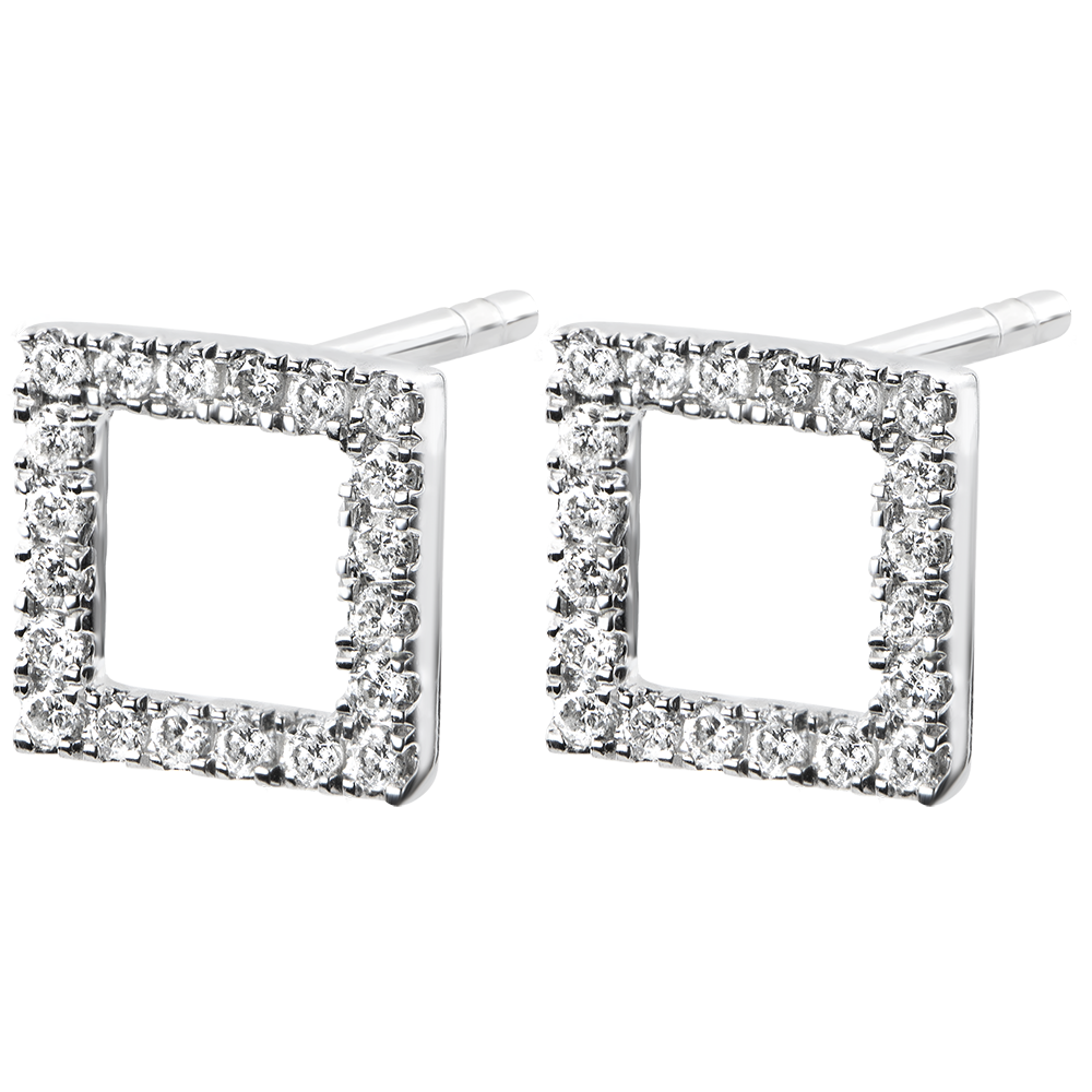 La perfection d'un carré ajouré, souligné d'un pavage diamants. Une paire de boucles d'oreilles sobre et graphique.