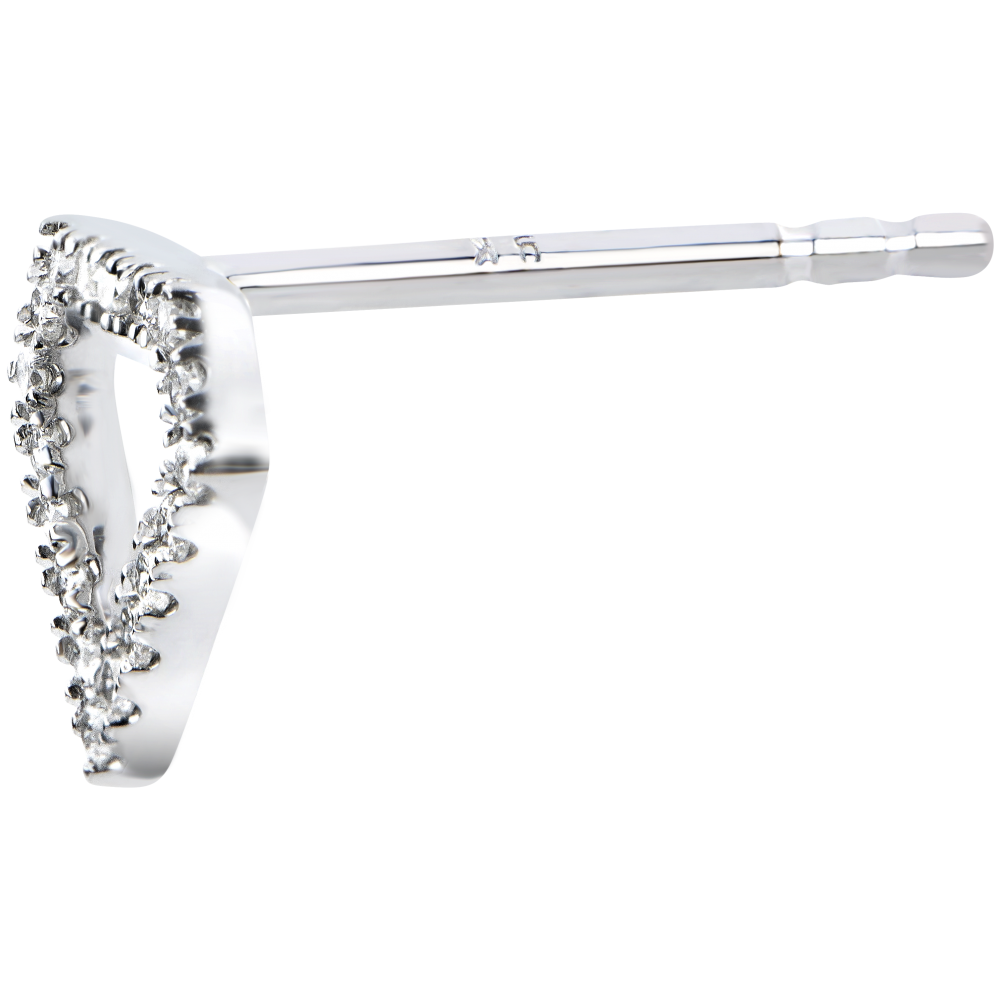 Une paire de boucles d'oreilles graphique et minimaliste, aux contours pavés qui célèbrent la silhouette d'un diamant.