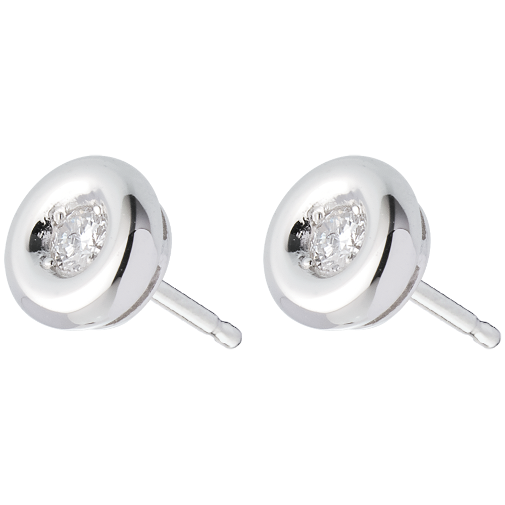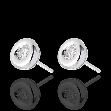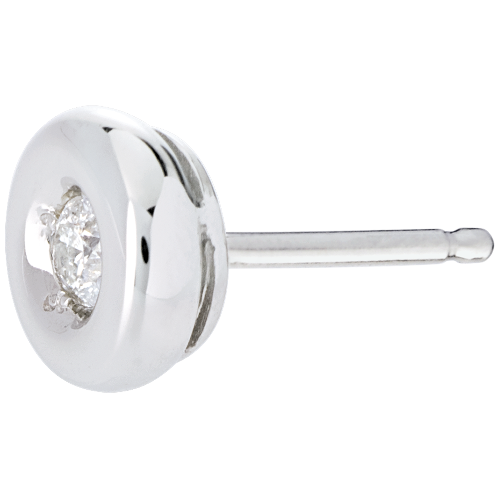 Un diamant lové au coeur d'un calice or blanc, pour des puces d'oreilles rondes et délicates.