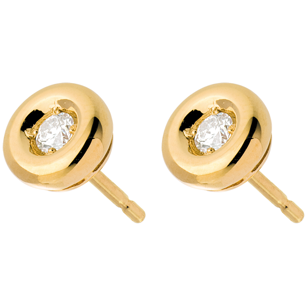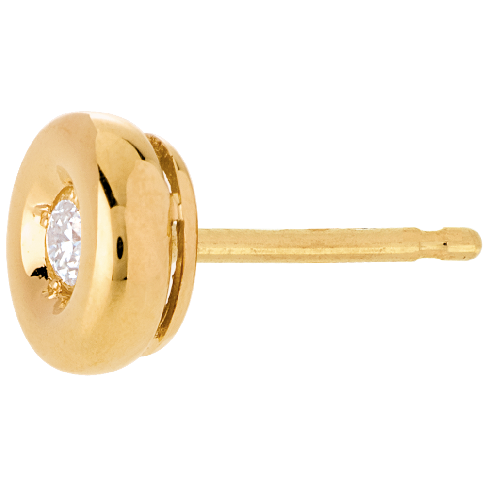 Un diamant lové au coeur d'un calice or jaune, pour des puces d'oreilles rondes et délicates.