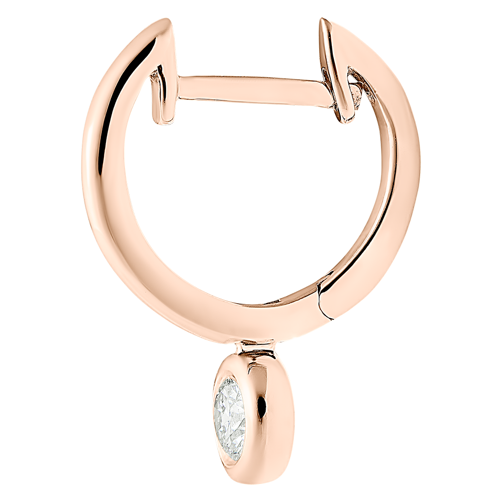 Une paire de créoles tout or rose dont la pampille sertie diamant scintille délicatement à chaque mouvement.