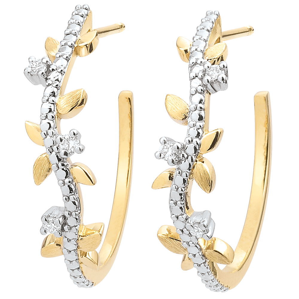 Boucles d'oreilles créoles Jardin Enchanté - Feuillage Royal - or jaune 9 carats et diamants