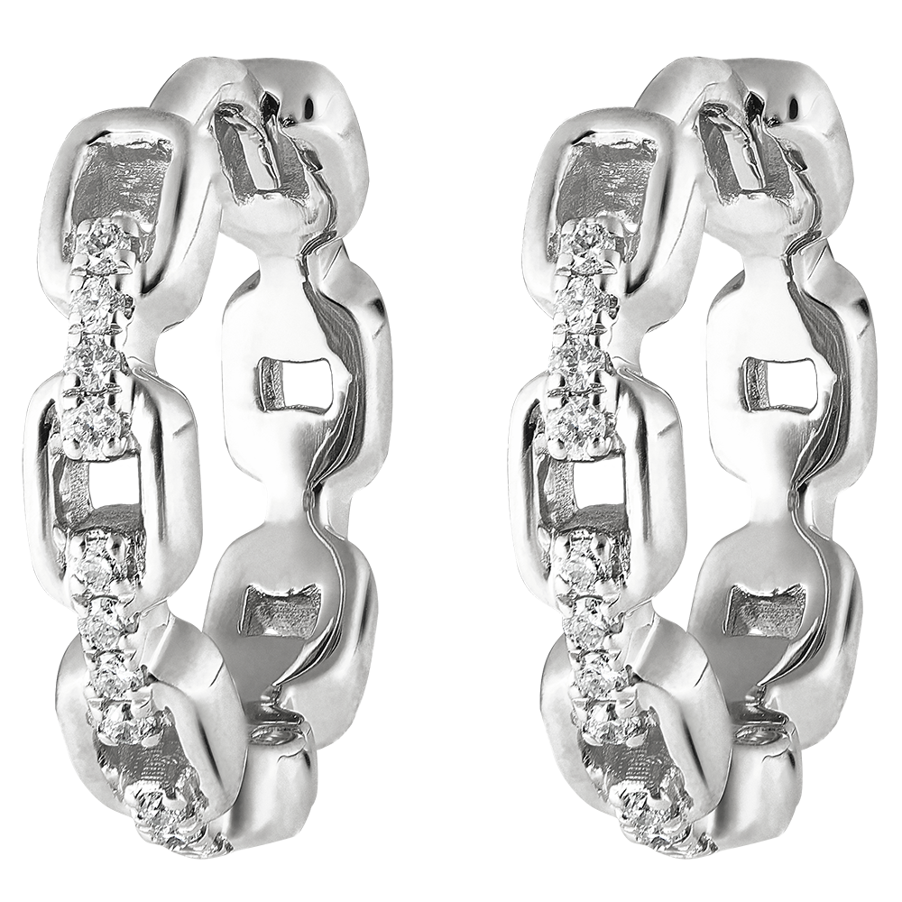 Boucles d'oreilles Créoles Regard d'Orient - Maillon Cubain - or blanc 9 carats et diamants