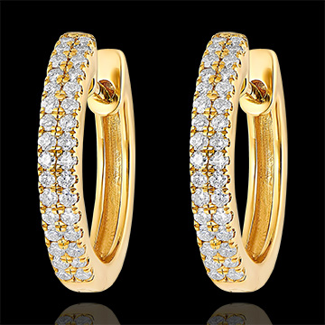 Une paire de créoles or jaune semi pavées dont le double rang de diamants apporte éclat et élégance toute en légèreté.