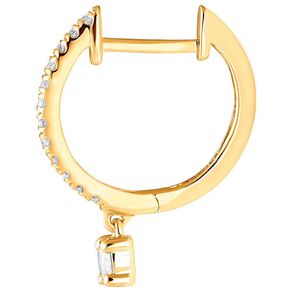 Une paire de créoles or jaune semi pavées dont la pampille sertie diamant ajoute une touche précieuse et éclatante.