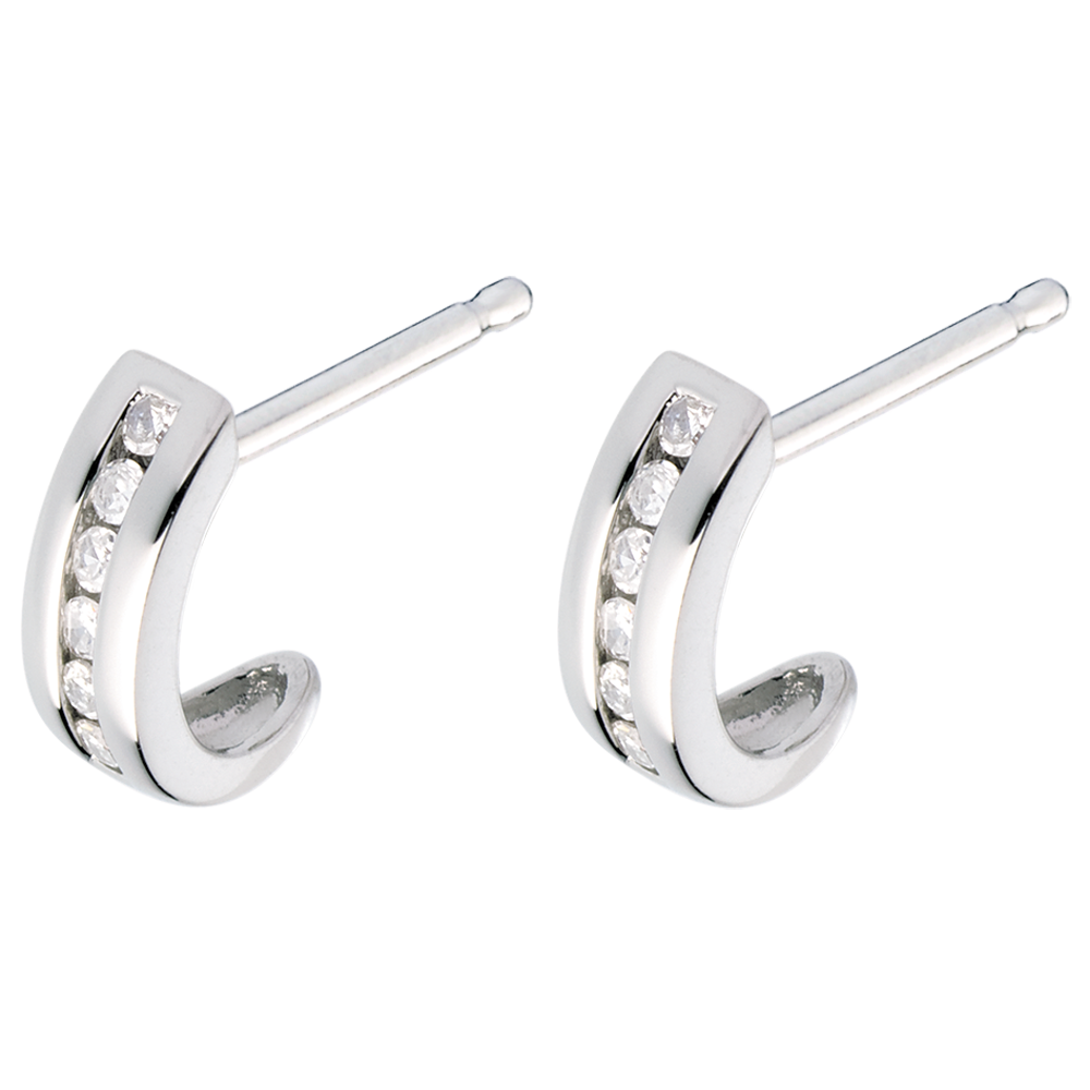 Boucles d'oreilles demie lune pavée or blanc 18 carats - 12 diamants