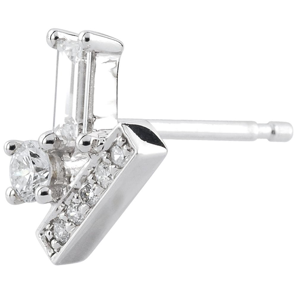 Un diamant rond, un pavé paré de brillants et un diamant baguette forment un délicat morceaux de givre précieux.