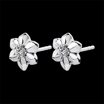 Boucles d'Oreilles Éclosion - Dalhia - or blanc 9 carats et diamant