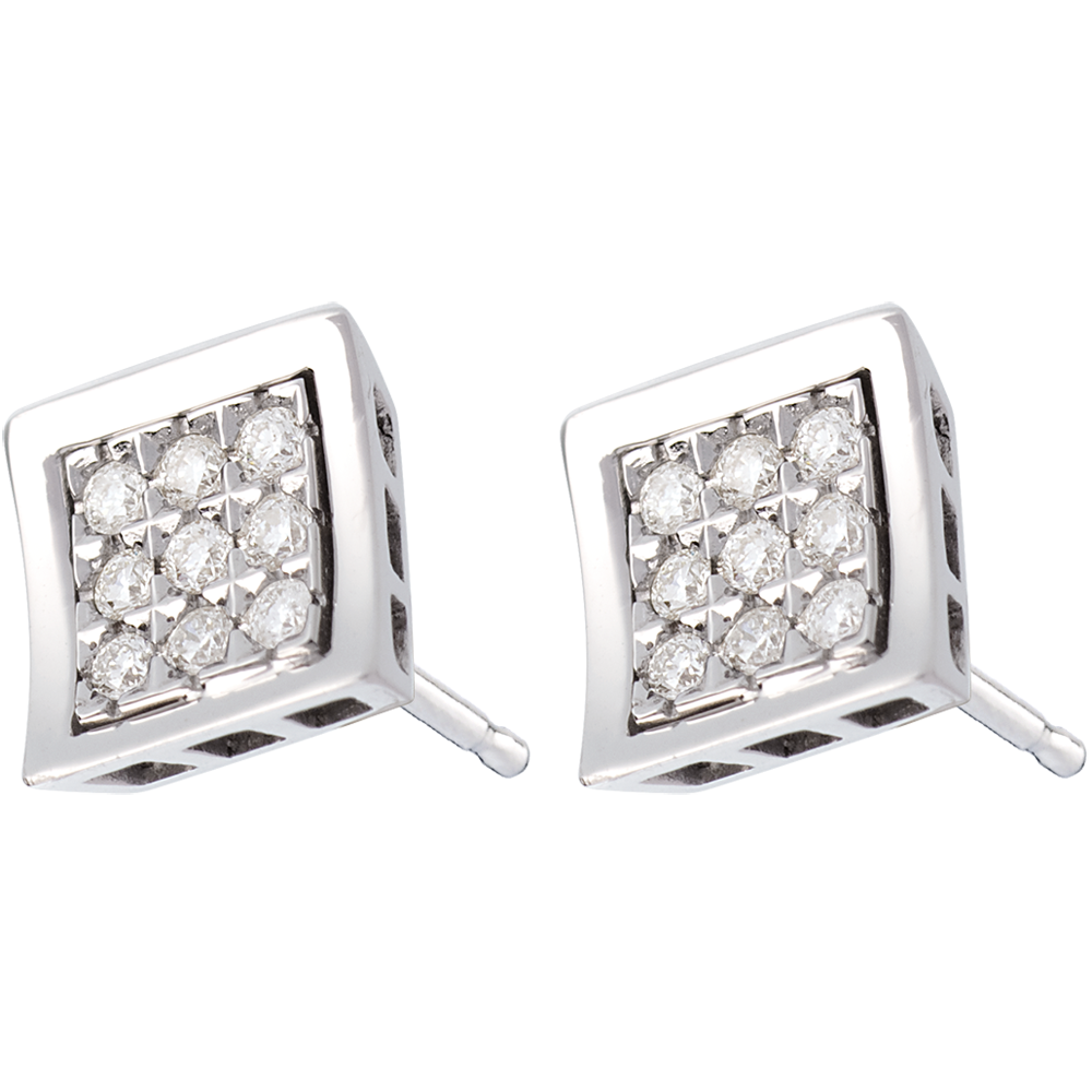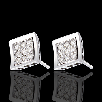 Boucles d'oreilles empreinte - puces or blanc 18 carats pavées - 0.27 carats - 18 diamants