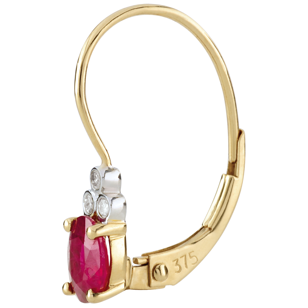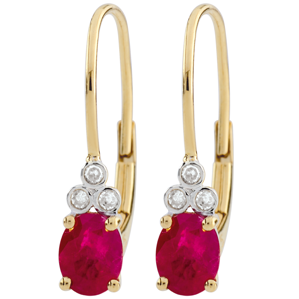 Boucles d'oreilles Exquises - rubis et diamants - or jaune 9 carats
