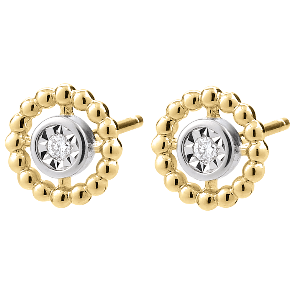 Boucles d'oreilles Fleur de Sel - Cercle - or blanc et or jaune 9 carats