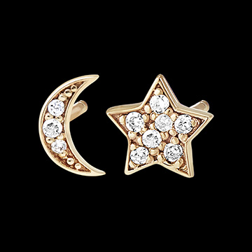 Découvrez cette paire de puces en or jaune 18 carats, au design délicat en forme d'étoile et de lune.
