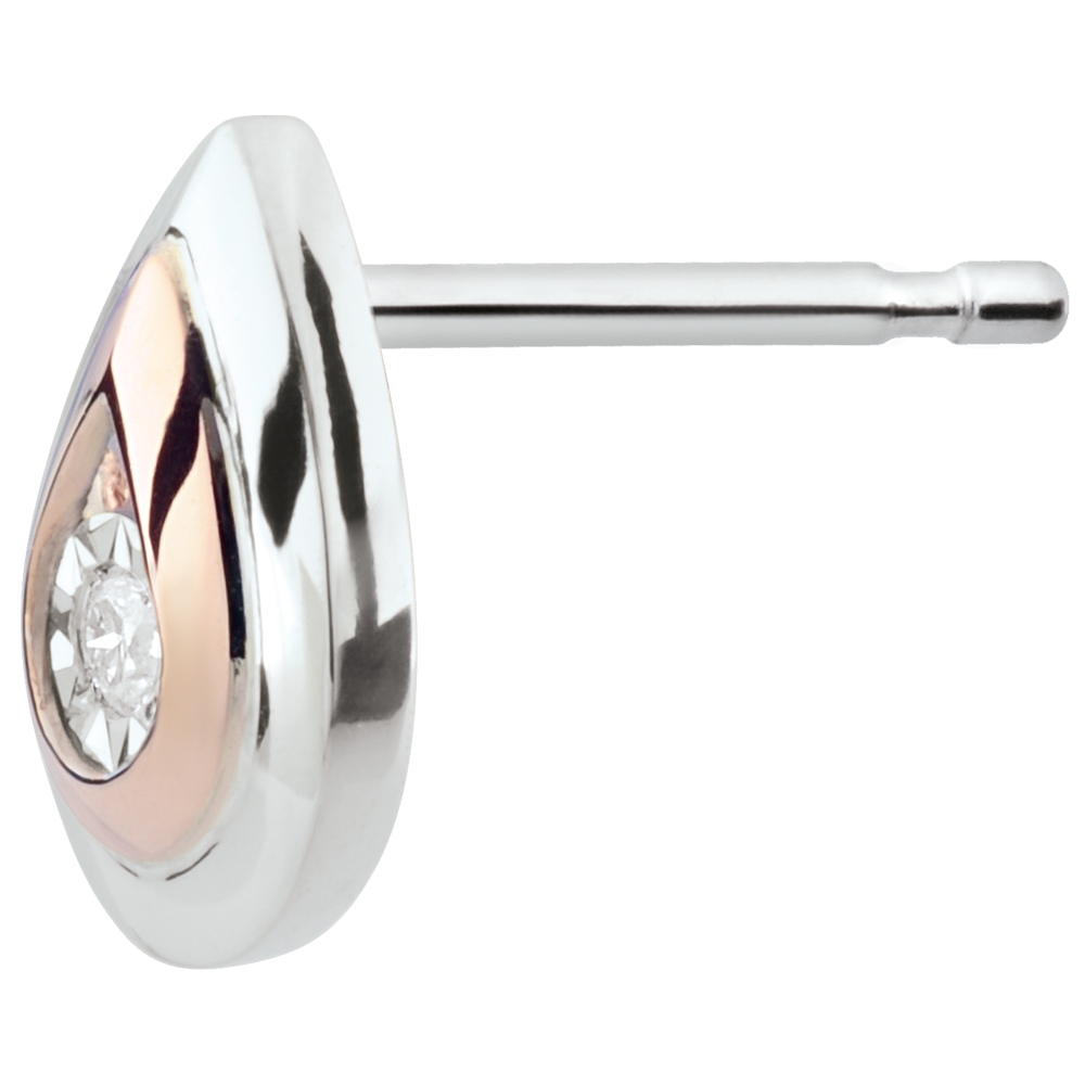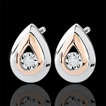 Deux délicates larmes en or blanc et or rose dont l'éclat est un diamant scintillant en leur centre.