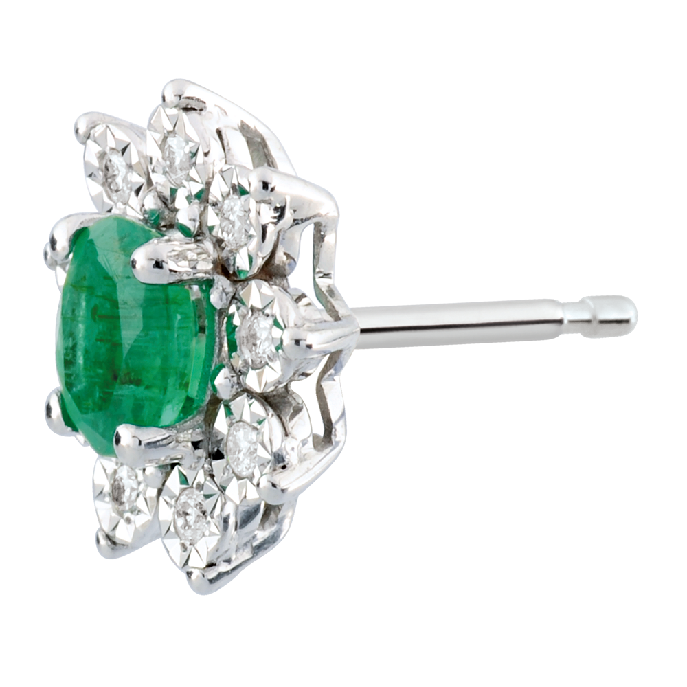 Boucles d'oreilles Eternel Edelweiss - Marguerite Illusion - émeraude et diamants - or blanc 9 carats