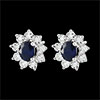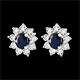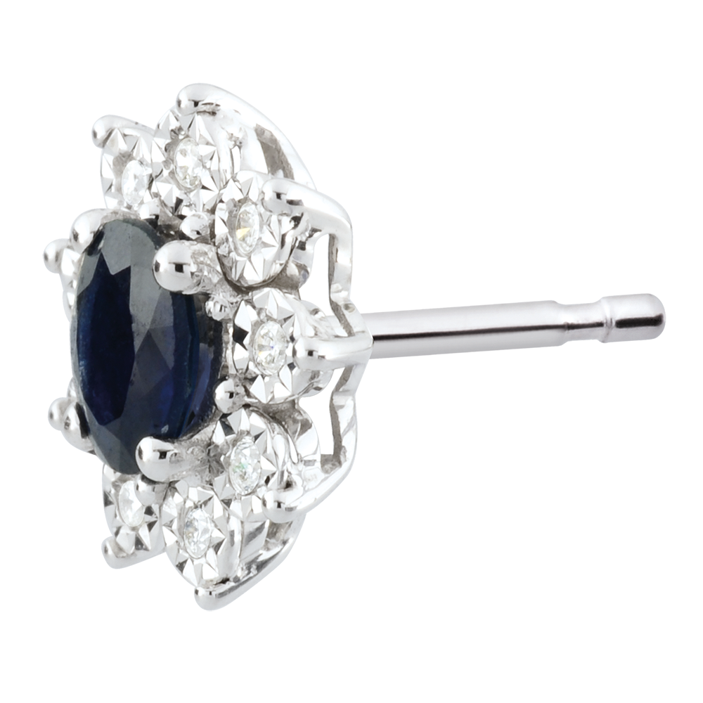Sur chaque puce, un saphir ovale est le centre d'une marguerite d'or blanc aux pétales incrustés d'un diamant.