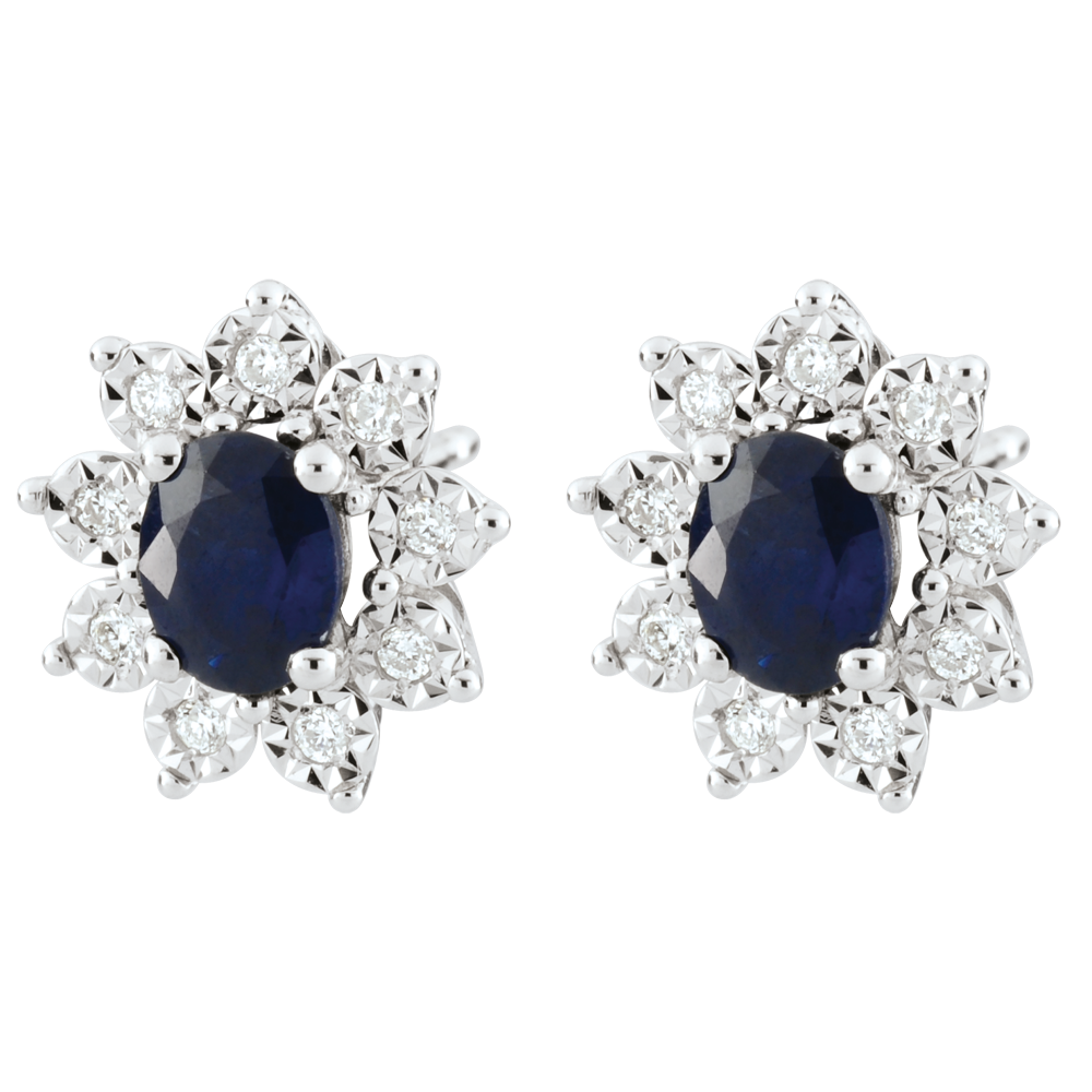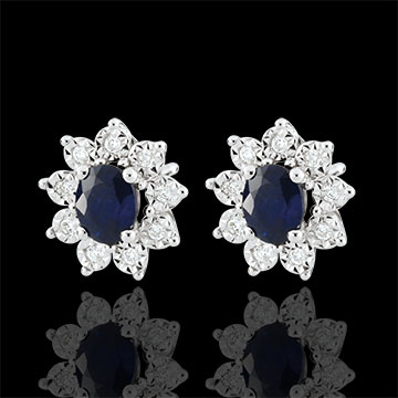 Boucles d'oreilles Eternel Edelweiss - Marguerite Illusion - saphir et diamants - or blanc 18 carats