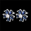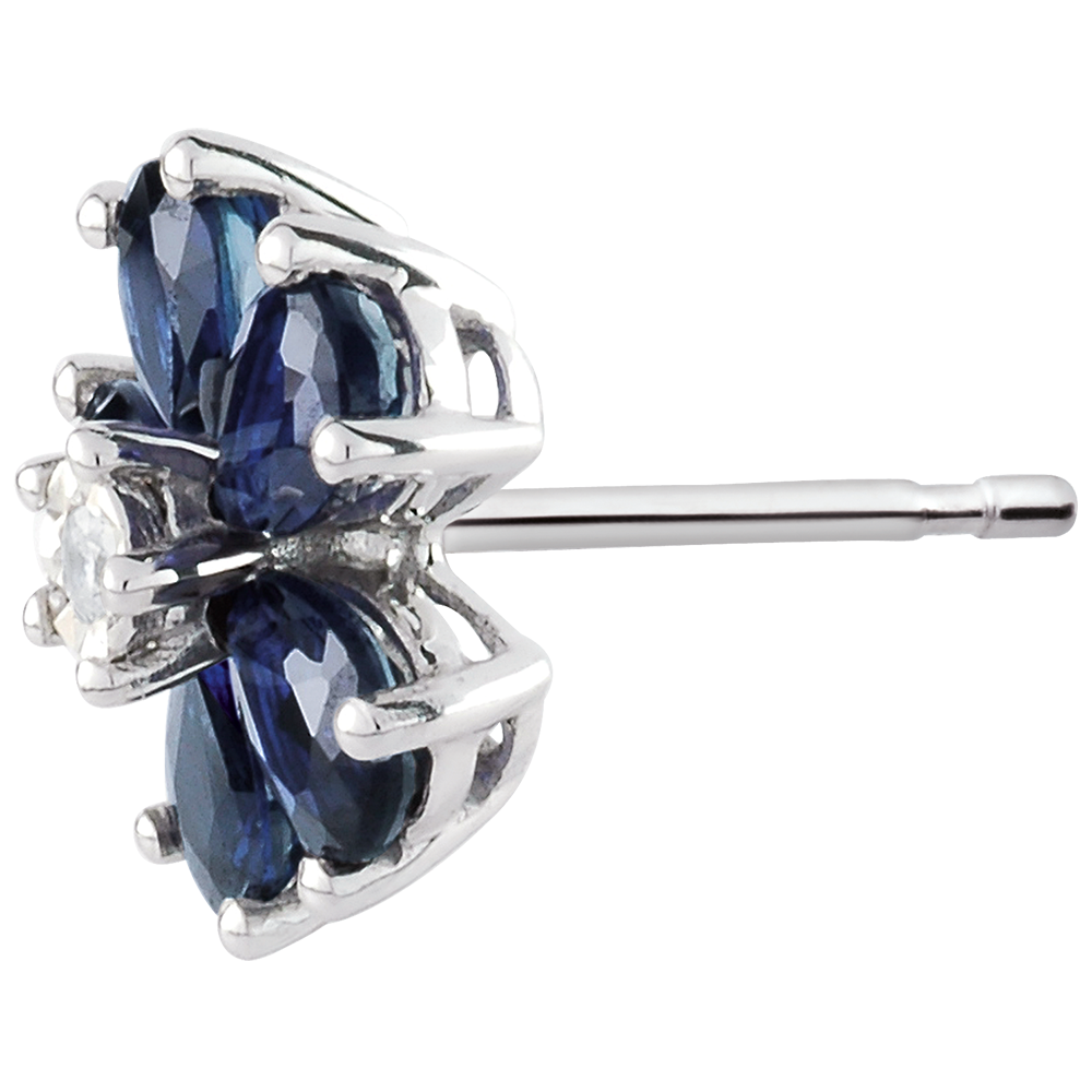 Des pétales de saphirs et un coeur de diamant, des fleurs rares et précieuses. Dimension saphir poire: 4x3mm. 2 diamants : 0.03 carat - Or blanc (9 carats = 375/1000): 1 g. Saphir bleu : 10 - Total: 2.13 carat Plus dimensions
