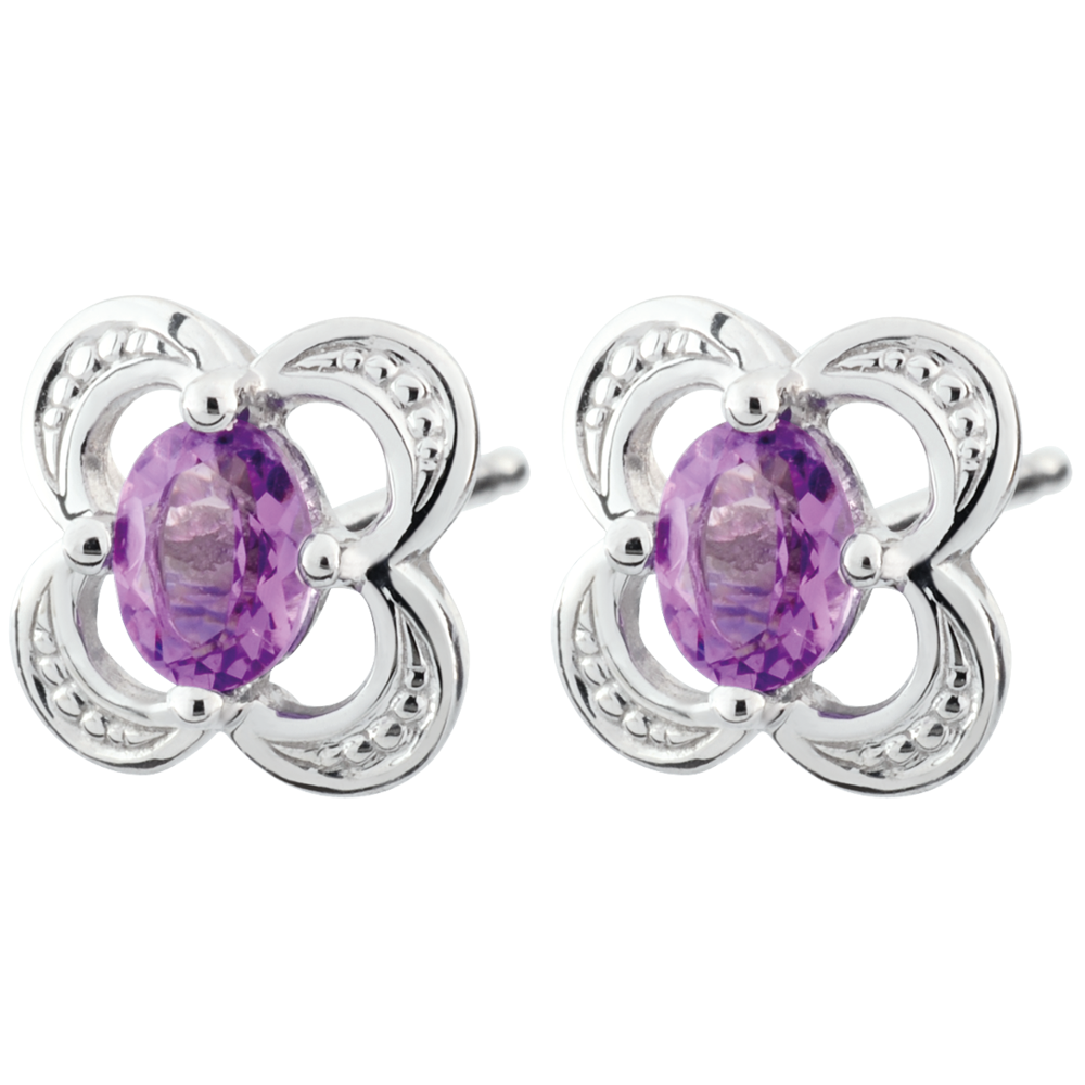 Boucles d'oreilles Mini Flora - améthyste - or blanc 9 carats