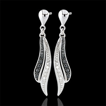 Boucles d'oreilles Clair Obscur pendantes - or blanc 9 carats et diamants noirs