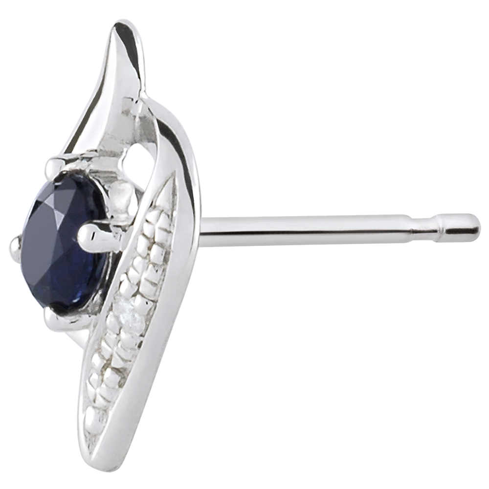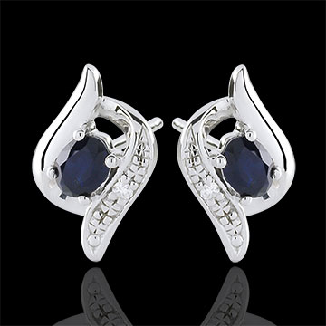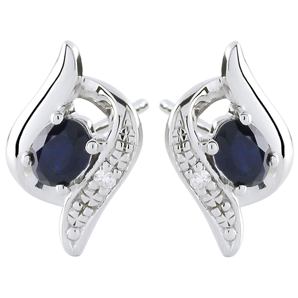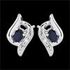 Un mouvement d'or et diamant entoure un saphir sur chacune des puces. Une paire de boucles d'oreilles féminine et originale.