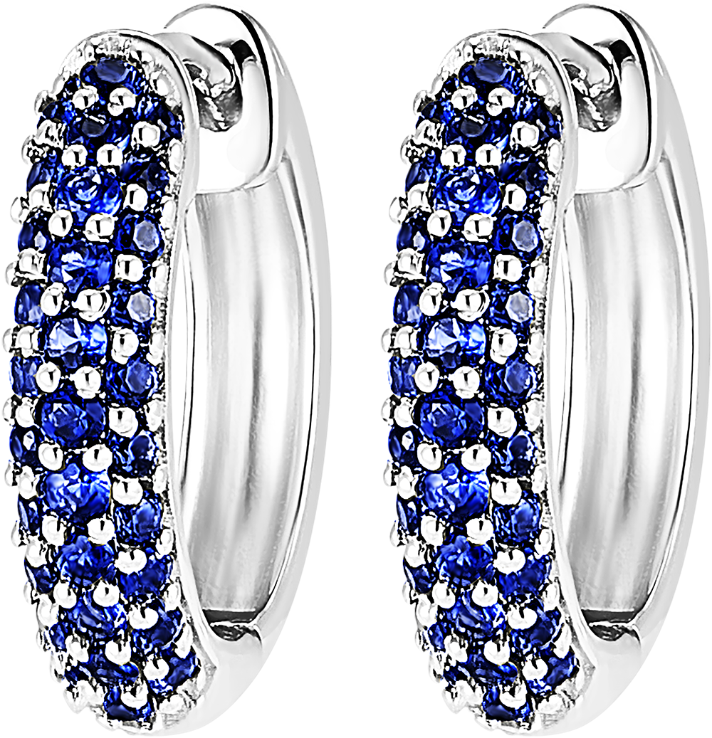Une paire de créoles or blanc sertie de 62 saphirs délicats sur trois rangs. Un bijou classique et intemporel à la fois pour une note colorée. Or blanc (18 carats = 750/-): 2.6 g. Saphir bleu : 62 - Total: 0.5 carat Plus dimensions