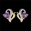 Des courbes d'or romantiques enlacent deux améthystes en forme de coeur. Or blanc et or jaune (9 carats = 375/1000): 0.7 g. Améthyste : 2 - Total: 0.46 carat Plus dimensions