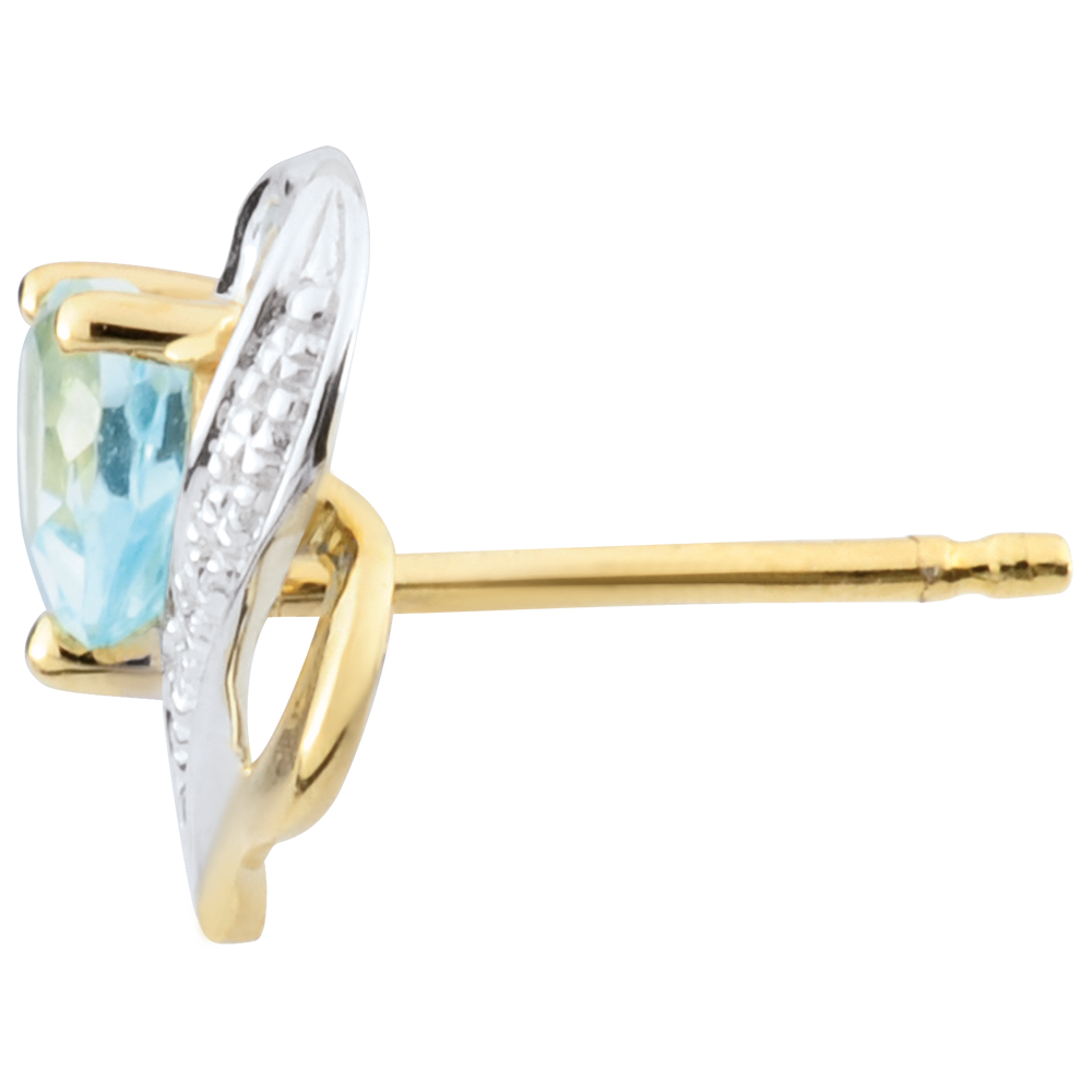 Boucles d'oreilles Ouaki - topaze bleue - or blanc et or jaune 9 carats