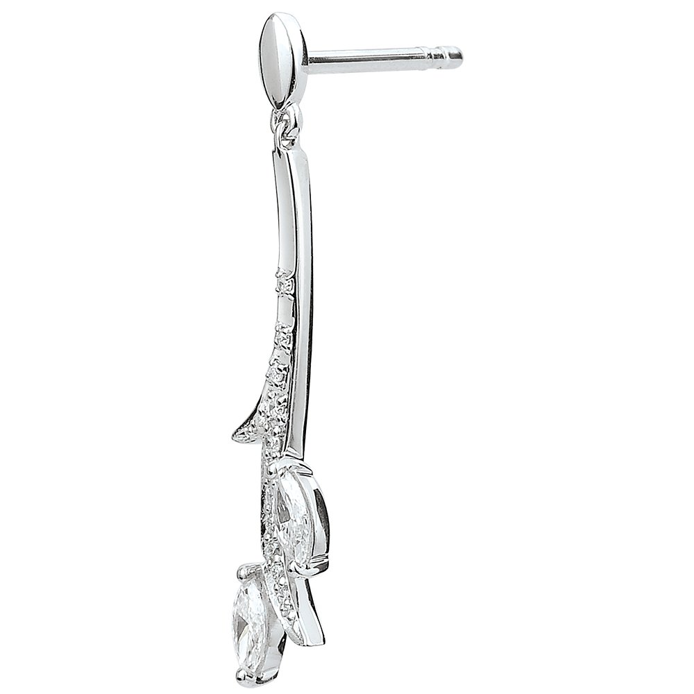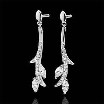 Boucles d'oreilles pendantes Bois Mystérieux - or blanc 9 carats et diamants navettes