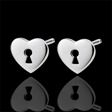 Boucles d'oreilles Précieux Secret - Coeur - or blanc 9 carats