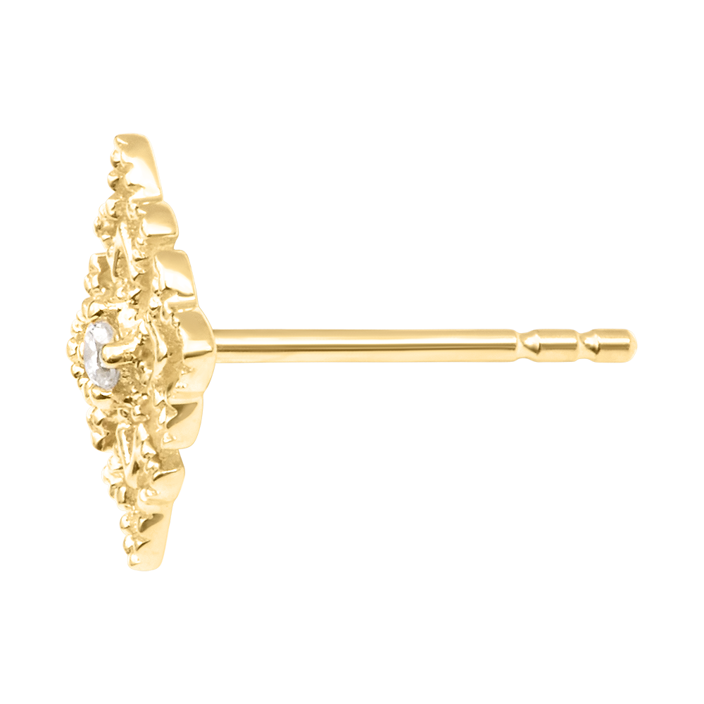 Un motif ajouré à la symétrie florale, illuminé en son cœur d’un diamant synthétique. Ces puces d’oreilles en or jaune 9 carats allient finesse et élégance. Légères et délicates, elles apportent une touche lumineuse et raffinée, idéale pour sublimer tous les styles au quotidien. Issue de la collection Fraicheur, ce bijou s’inspire de la beauté naturelle et de la diversité de la nature.… Voir plus Infos techniques