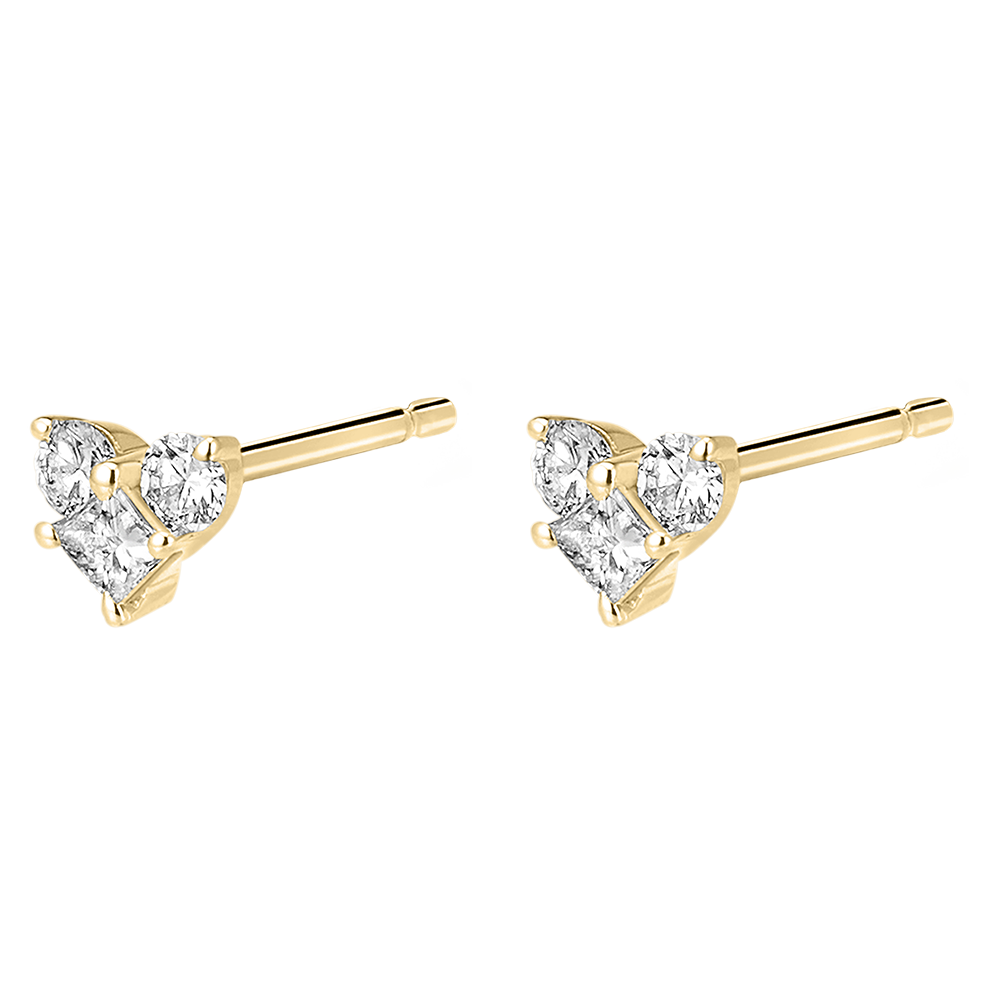 Deux minis cœurs pavés de 3 diamants délicatement sertis sur une puce or jaune. Cet icone de la joaillerie est revisitée par Edenly avec poésie pour une déclaration d'amour des plus intenses. Oh, mini lovely! 6 diamants : 0.2 carat - Or jaune (18 carats = 750/-): 0.7 g. Cluster de diamants naturels : 6 - Plus dimensions