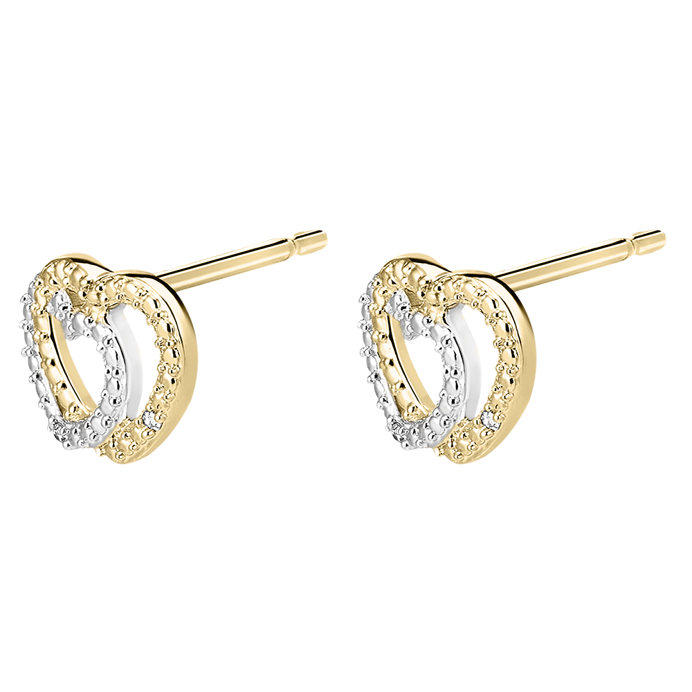 Boucles d'Oreilles Puces Précieux Secret - Cœur Complices - or blanc et or jaune 9 carats et diamants