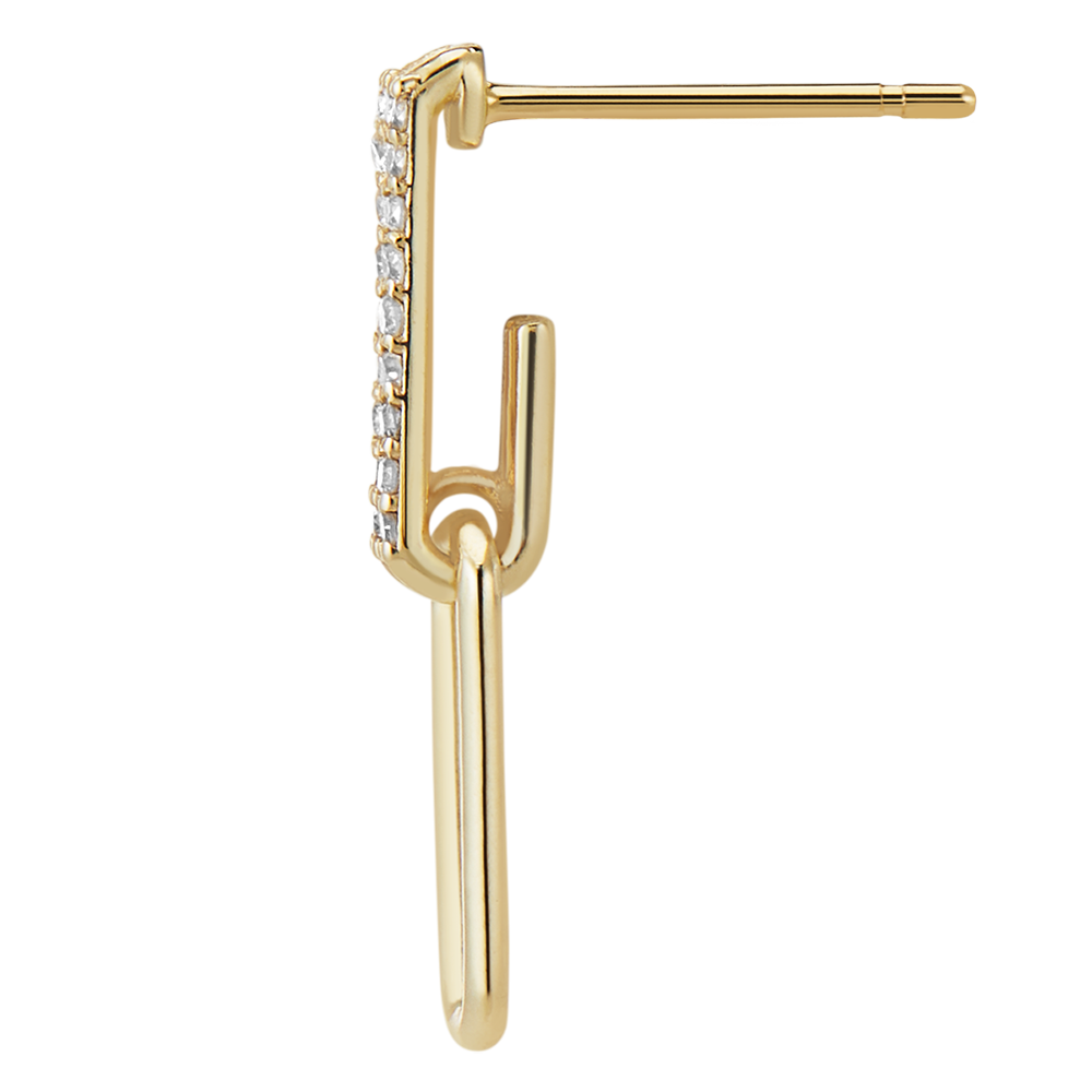Un duo de maillons or jaune délicatement diamantés se balancent aux rythme de vos mouvements. Une paire de boucles d'oreilles modernes et raffinées.