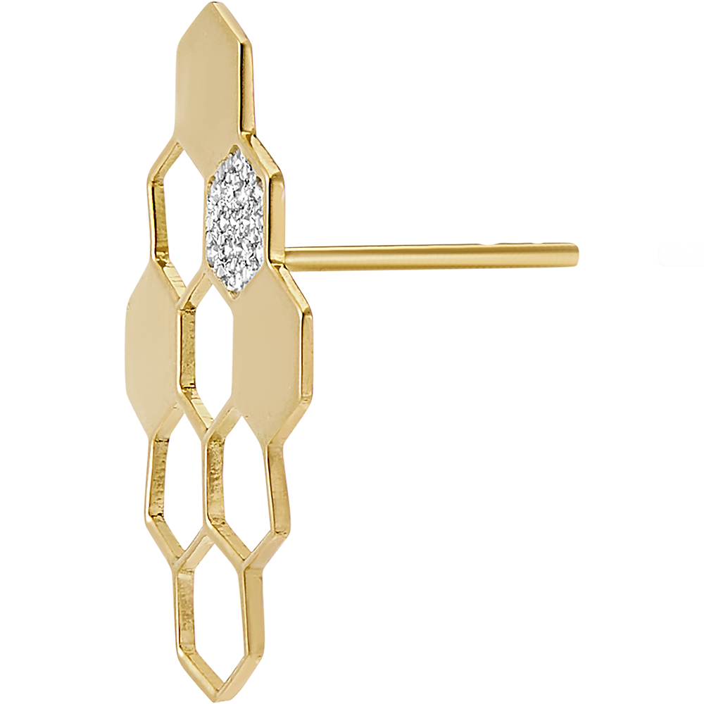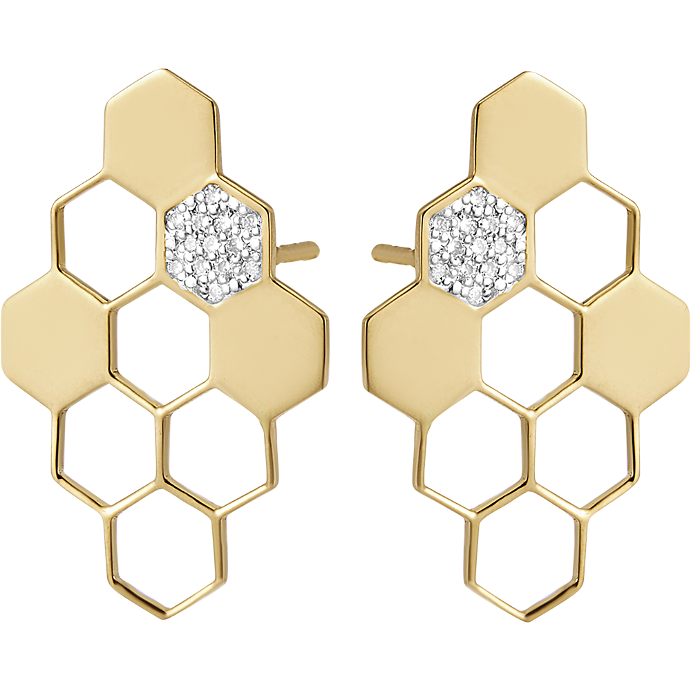 Inspirées du précieux travail des abeilles, les boucles d'oreilles Révélation arborent un motif d'alvéoles géométriques à la fois élégant et poétique. Chaque boucle est composée d’or jaune 9 carats finement travaillé, avec 3 alvéoles emplies d’or et parsemées de 13 diamants synthétiques scintillants. Ce bijou raffiné sublimera votre style en toutes occasions, alliant délicatesse et engagement responsable.… Voir plus Infos techniques