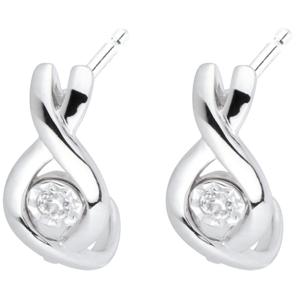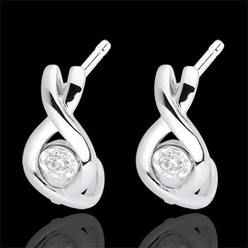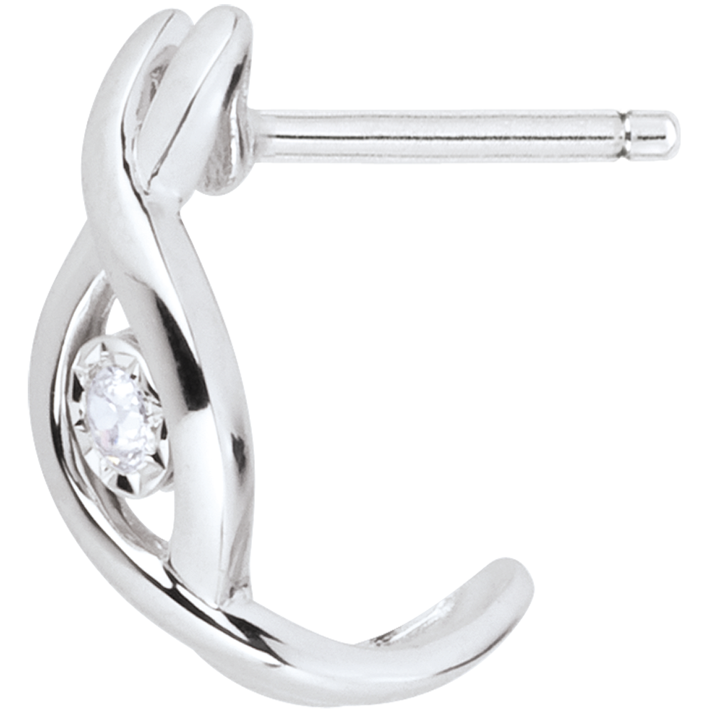 deux serpentins d'or blanc s'entremêlent et lovent un diamant solitaire sur chaque boucle d'oreilles.