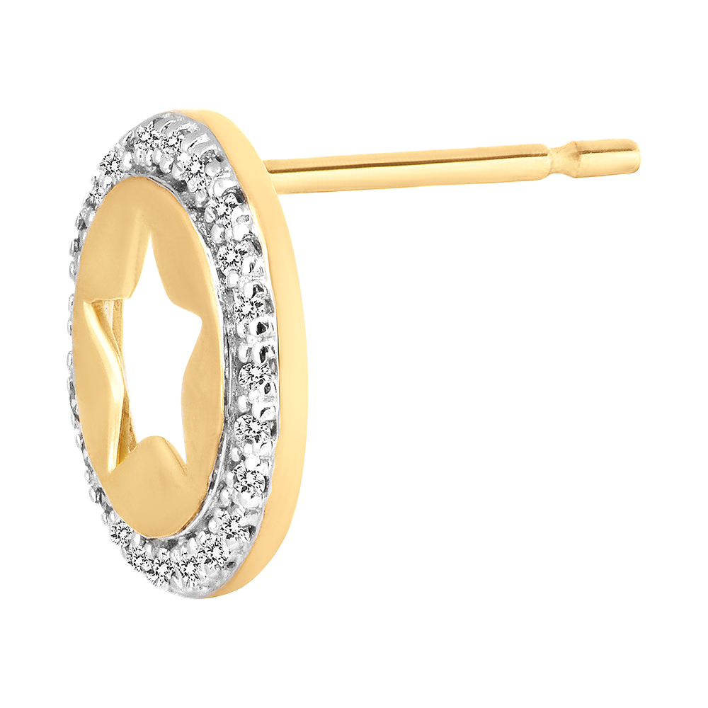 Les boucles d'oreilles Stellar dévoilent un design délicat avec une étoile évidée en or jaune au centre, entourée d'un pavé de 48 diamants scintillants.