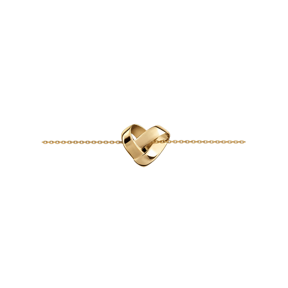 Le cœur, icône de la joaillerie, revisité par Edenly dans une version origami où les rubans d'or jaune s'enlacent avec originalité et élégance. Un bracelet déclaratif, emprunt de douceur ou de fougue, délicatement attaché au poignet.