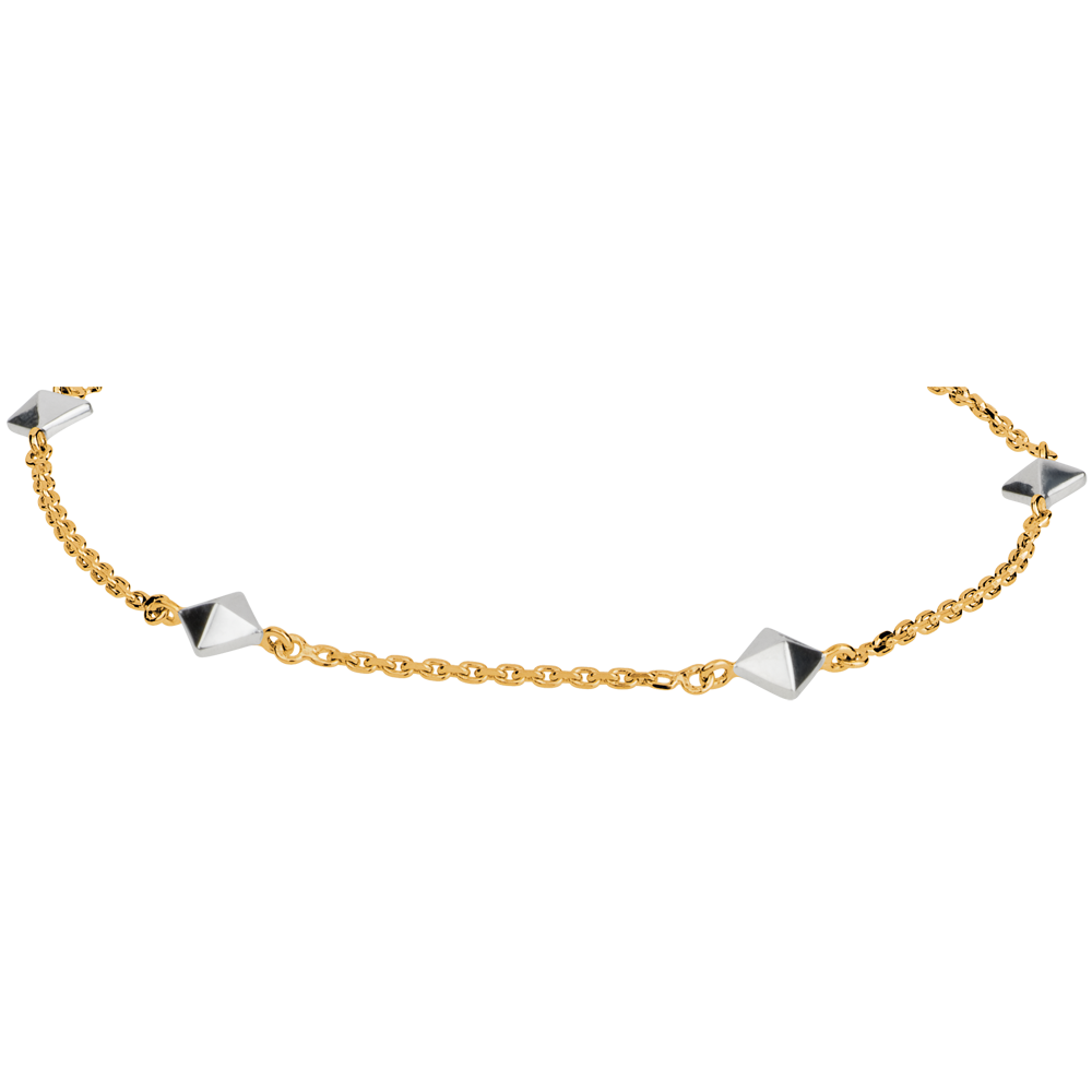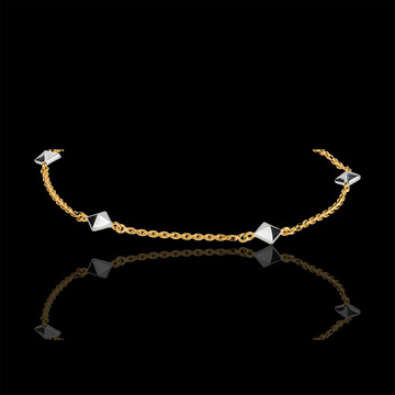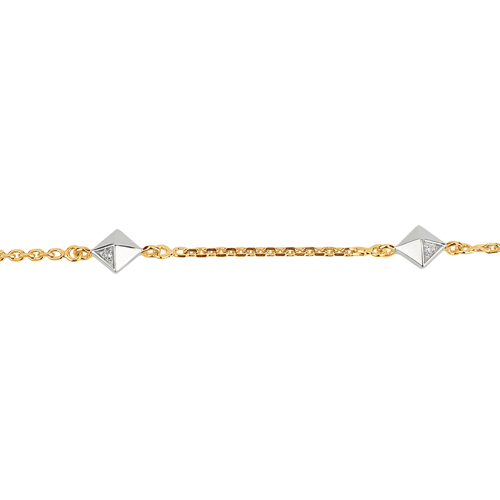 Inspirées de la forme d'un diamant brut, ces pyramides précieuses dont une facette porte un diamant sont élégantes et modernes. Motif de 5.5mm de long et 2mm de hauteur, Bracelet Genèse - de longueur réglable: 18cm, 17cm, 16cm. 4 diamants : 0.01 carat - Or jaune (9 carats = 375/1000): 1.2 g.Plus dimensions
